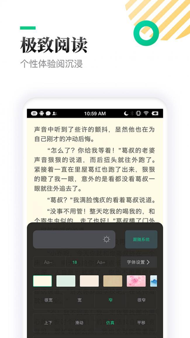 夜间模式,精美图书封面,内容整齐排版,细节体验,给你多重呵护,做懂你的电子书阅读器。