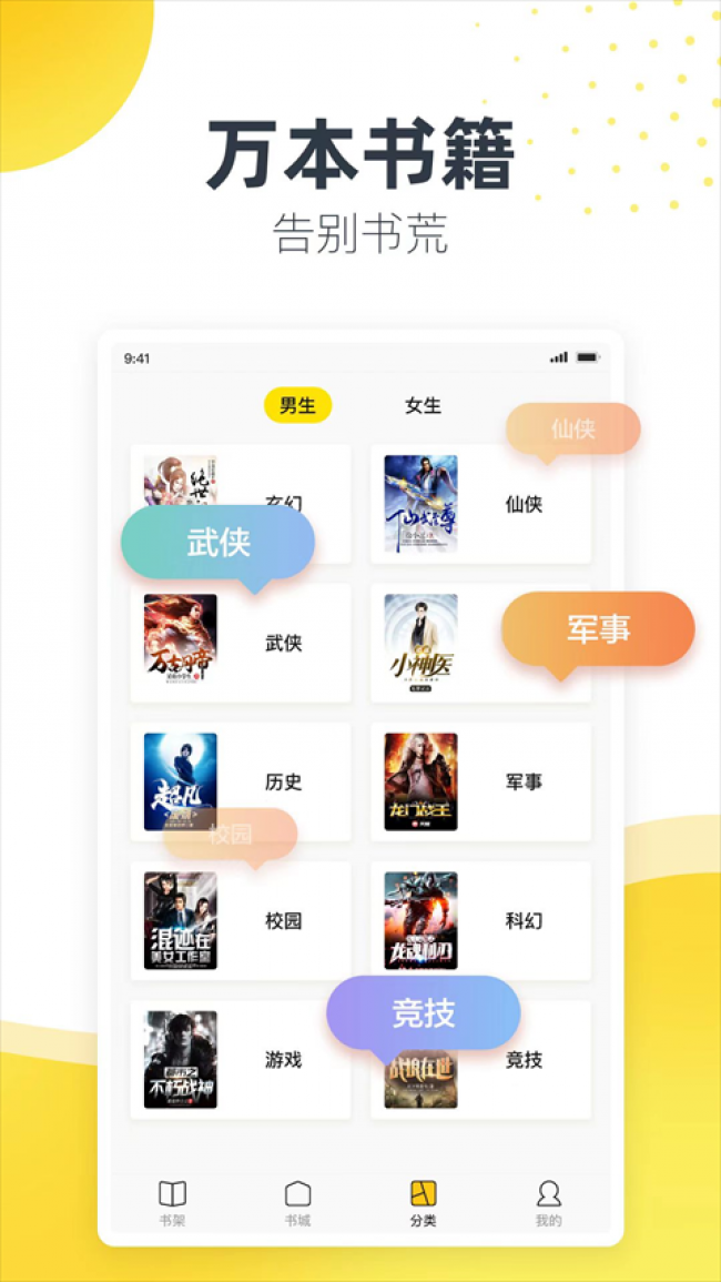 1、海量精彩内容:都市、玄幻,悬疑,言情,军事,历史,等各种类型小说;