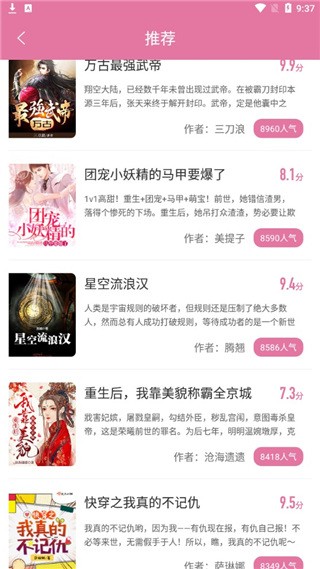 2、选择的男女频分类界面可以更好的满足不同性别用户阅读高质量小说的需求。