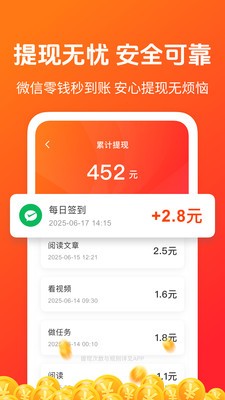 秒读极速版app下载是一款目前最好用的资讯阅读软件,它不仅仅可以让您看到各种精彩纷呈的小说,更有多样化的题材内容等您来发小,包括但不限于生活实事,娱乐八卦,健康养生,生活技巧,体育资讯等应有尽有,刷资讯可以领超大额的现金红包,提现速度非常快,软件的内存占用小,功能非常强大,性能稳定,自带干净大方的界面,操作简单好上手,内容板块分类明确,根据用户日常观看喜好,智能化推荐符合用户口味的内容,一键收藏喜欢的内容,便于下次观看,还可以在平台自由进行互动聊天,分享经验,喜欢的伙伴们快来下载试试吧。