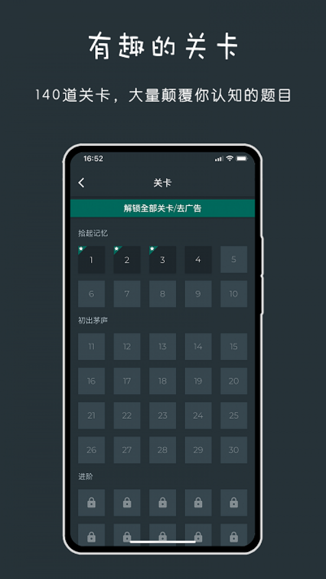 黑色数学app下载是一款趣味数学学习软件,软件为你提供游戏闯关的方式进行数学知识的学习,关卡丰富,一共拥有140关,分为:拾起记忆、初出茅庐、进阶、崭露头角、百里挑一、数学家等多个成就等级。关卡难度目前大多是小学和初中水平,拥有数学知识涉及计算、解方程、数字找规律(数列)、小学常见的应用题、几何图形中的相关计算、几何图形的规律等等,在你任何无聊的时候就可以打开进行闯关,让用户可以通过大量做题闯关的形式来提升锻炼自己的数学能力。喜欢的伙伴们快来下载试试吧。