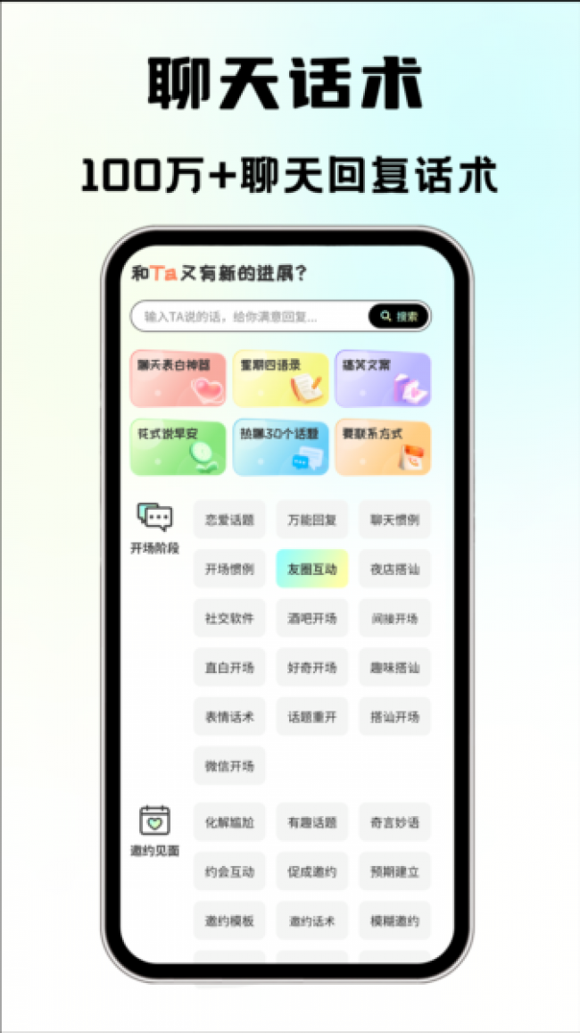1、该软件还提供了很多聊天的技巧,比如如何打开话题,如何维持聊天的热度,以及如何结束聊天等等。