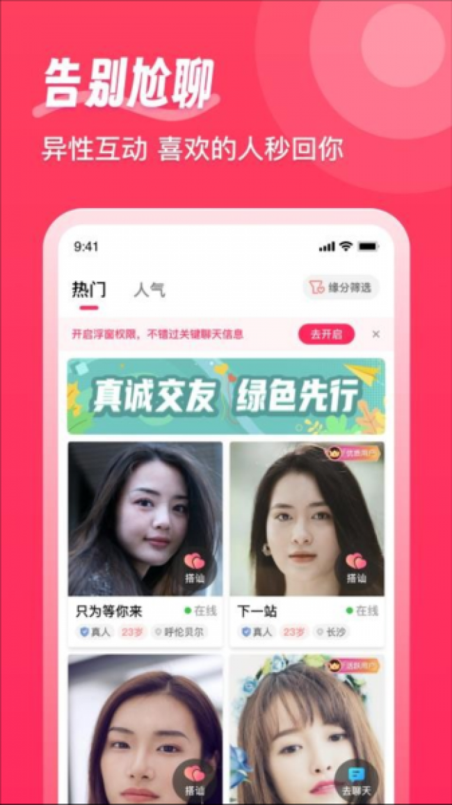 1、采用严谨的真人身份验证机制,建立一个安全、环保的朋友圈,保护使用者的权利。