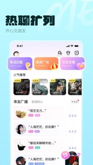 1、ME app以语音为纽带,通过语音交流,连麦互动,听出自己内心的声音。