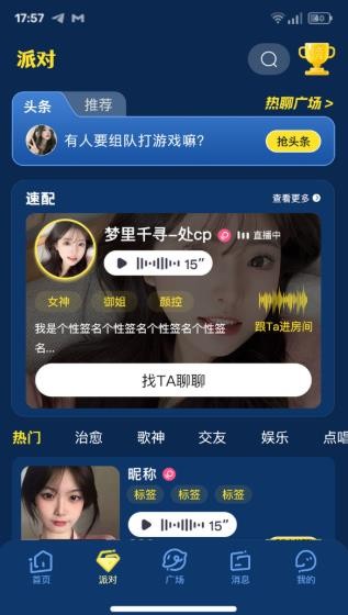 1、甜橙语音利用兴趣匹配技术,为用户寻找志趣相投的好友,并在此基础上建立起情感联系。