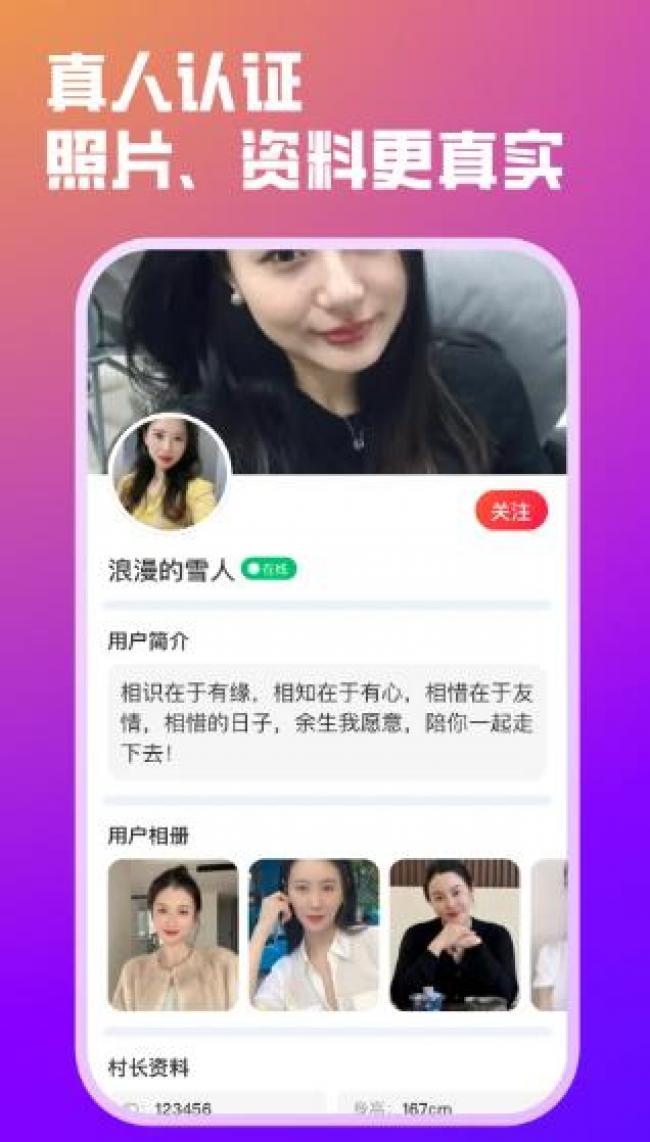 1、真交友多重验证程序,以真实身份验证个人资料,营造真实的交友环境。