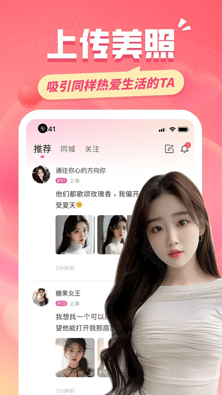 约友app下载是一款非常好用的社交软件,它可以帮你轻松拓展自己的社交圈子,在这里你可以发现很多附近的用户,你可以随时和自己感兴趣的用户在线聊天互动,为用户带来优质的社交体验,不论是交友还是恋爱都可以满足,用户还可以在这里发布各种社交动态,吸引更多用户的关注,遇到感兴趣的异性也可以在线上打招呼,大大提高了用户脱单的概率,再也不用担心没有途径结交新朋友,避免了线下搭讪的尴尬情况,即使是社恐也可以使用,如果你也喜欢这款软件的话,软件站现有最新版本,那就快来下载吧。