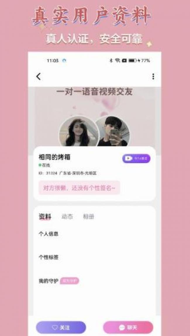 2、提供详尽的个人资料及友情需求会让配对变得更加简单,也更能凭直觉寻找到理想的对象;