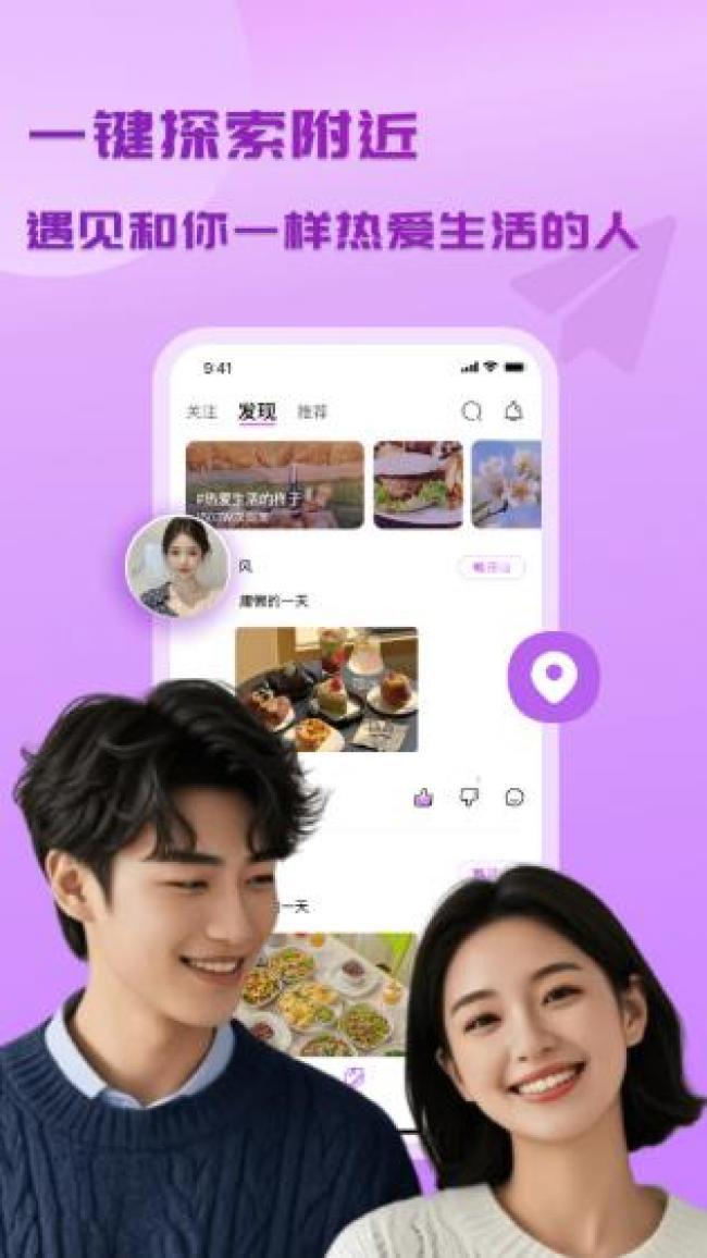 2、根据地理位置发现附近的用户,为线上约会下线创造便利条件,让你们随时随地见面。