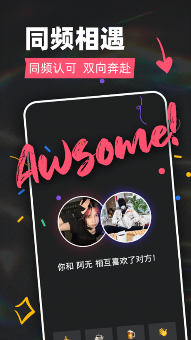 2、独一无二的闪光聊天功能,与同一频率的人进行配对。在交谈开始的时候,解除对你的 Ta的锁定。