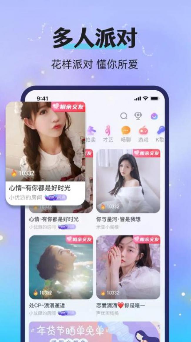 1、提供多人语音聊天室,让你和更多有意思的朋友一起聊天,唱歌,聊天,相亲,找对象等等。