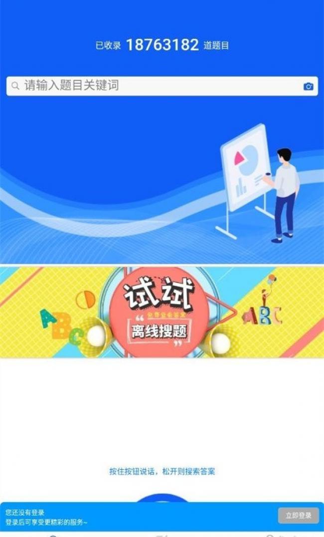 2、使用文字,声音,图片精确识别试题内容,准确高效,随时随地学习。