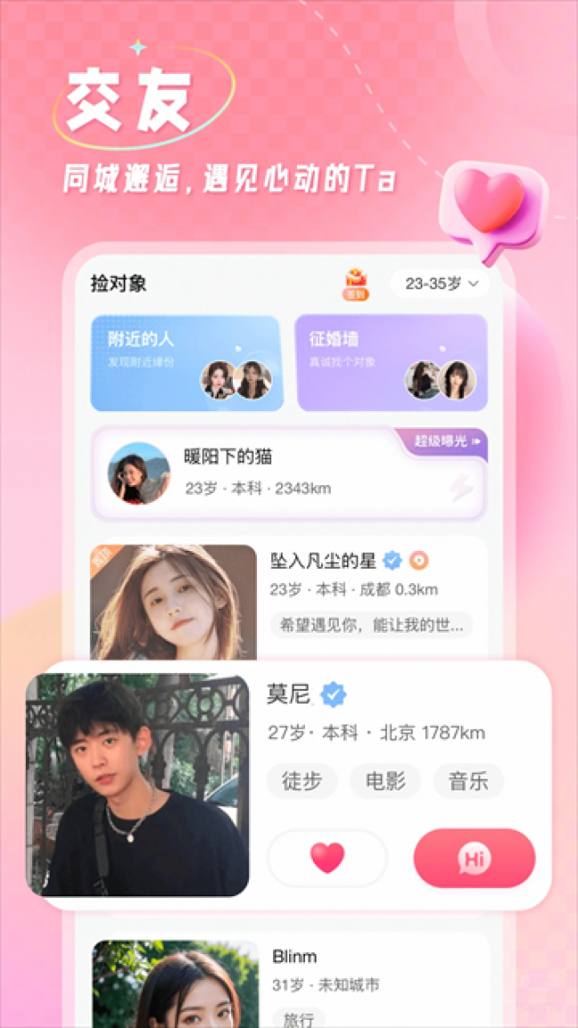 1、定时为你推荐附近,同城,网上寻找真爱的单身朋友,帮助你找到自己的真爱,找到适合你的人,让你不再孤独。