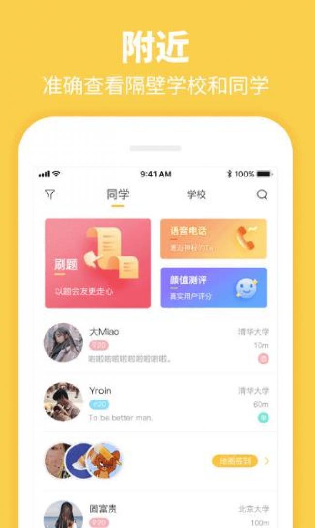 2、这是一款很用心的大学谈恋爱软件,由女生出题目,男生出题目,通过后加好友,非常贴心,也很有意思。