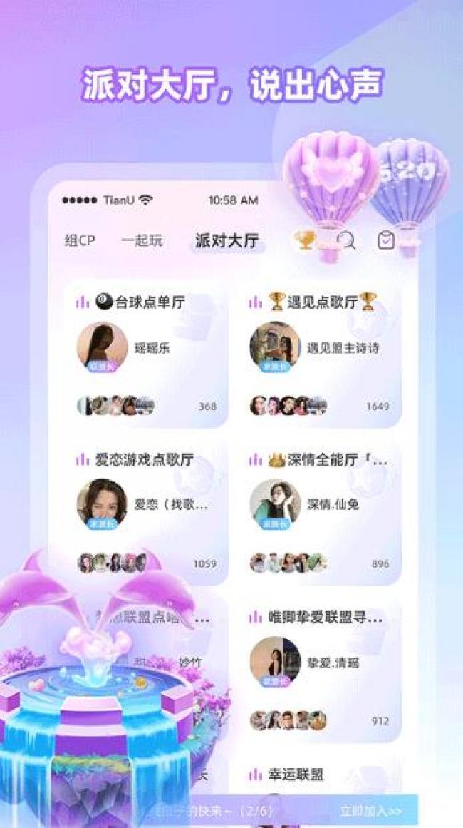 1、派对大厅寻搭子,可以陪你吃饭、看电影、语音聊天、游戏开黑等,让生活不再孤单。
