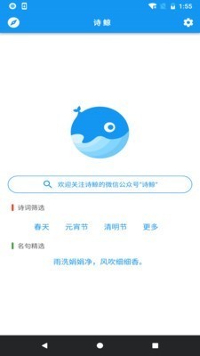 诗鲸官方下载是一款专门为诗词爱好者设计的学习软件,其中包含了丰富的诗词内容,用户可以在其中找到自己喜欢的类型进行学习,可以有效的帮助自己扩充诗词的储备量,并且每一首诗词都有详细的注解,能够帮你了解其中的每一个字的含义,这首诗的场景以及诗人的介绍,让你全面的了解一首诗的所有知识内容,能够更好的帮助你进行学习。同时还能进行搜索,查询你需要的诗词句,让自己也可以成为一个满腹经书的人,不仅能提升你的知识储备还能熏陶自己的文化素养。喜欢的伙伴们快来下载试试吧。