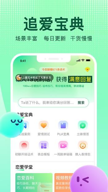3、追爱宝典app套路惯例与聊天模板,持续更新遇到问题只需要搜一搜就有答案了。