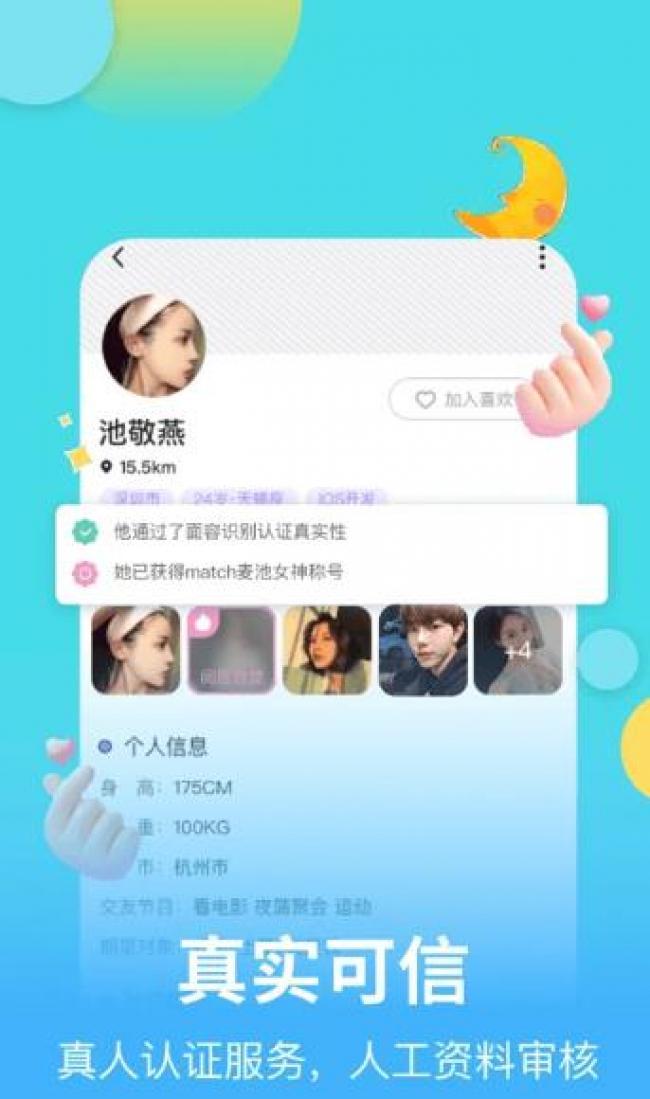 1、上千万单身男生女生,聊天秒回热情洋溢,人工审核精选优质用户,真实靠谱轻松交友。