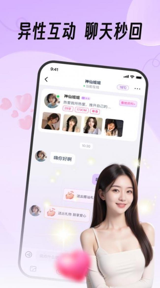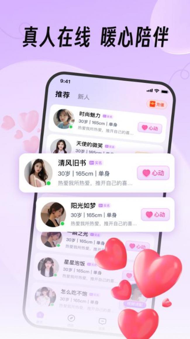 2、分享彼此真实生活动态,发现一见钟情的人,真人面对面实时互动,真实可靠,甜蜜陪伴。