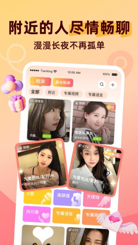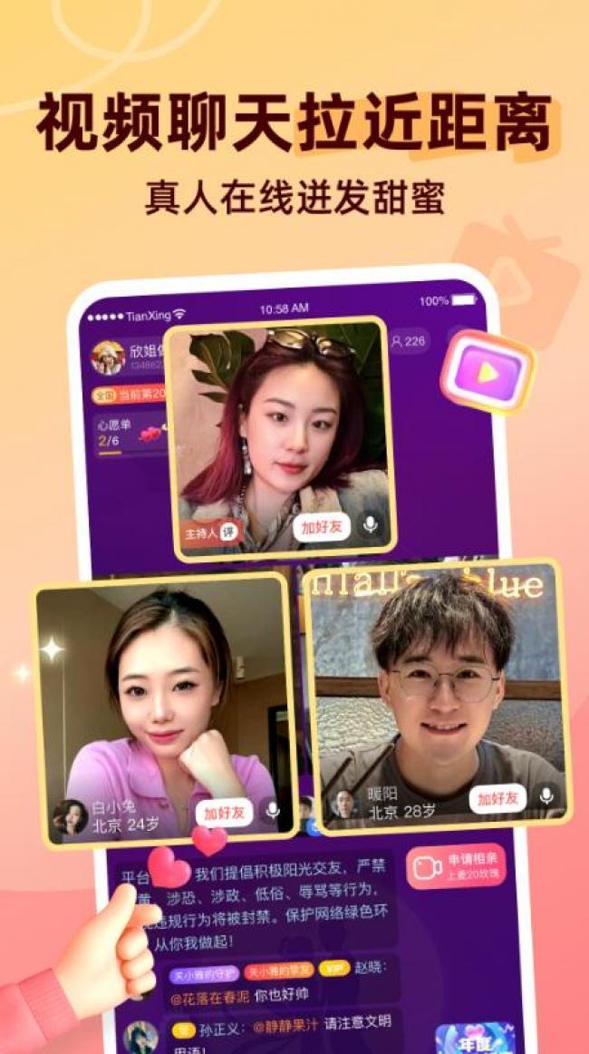 3、真人在线进发甜蜜,聊天聚会玩法超多,情感密聊孤单消散。