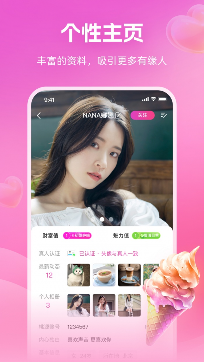 3、真人认证,放心交友,随时随地聊天,让彼此更加亲近,丰富的资料,吸引更多有缘人。