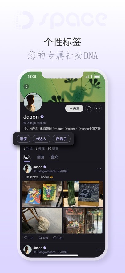 1、D.space AI延申你的社交边界,世界从此触手可及,我们致力于解决信息过载时代的社交。