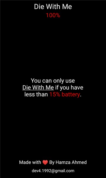 DieWithMe最新版下载是一款设计独特的社交聊天软件,在这里你必须在手机电量低于15的时候才可以进行聊天互动,这里所有的用户的手机电量都是低于15的,可以帮你们轻松转移掉电量焦虑,这里汇聚了大量的低电量用户,可以为你的闲暇生活带来更多乐趣,在这里你可以随时和其他用户在线交流,结识更多志同道合的伙伴,为你的闲暇生活带来更多乐趣,再也不用因为手机电量过低而烦恼,非常适合有电量焦虑的用户使用,如果你也喜欢这款软件的话,软件站现有最新版本,那就快来下载吧。