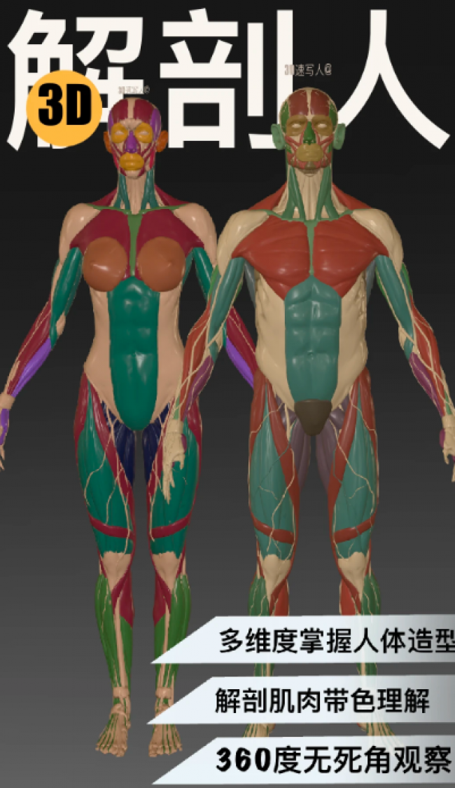 2、助力学生及初学者深入理解如解剖学、建筑学等专业知识。