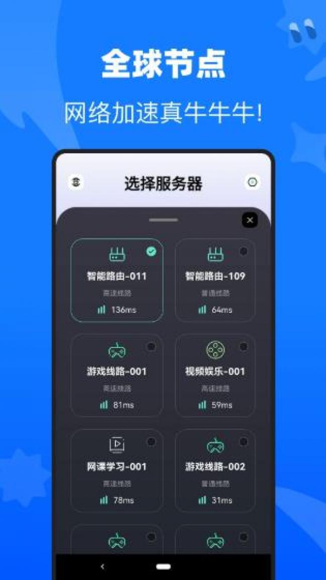 1、牛牛加速器app提供一键式在线加速,使您能够轻松加速相关网络,并随时执行网络加速。