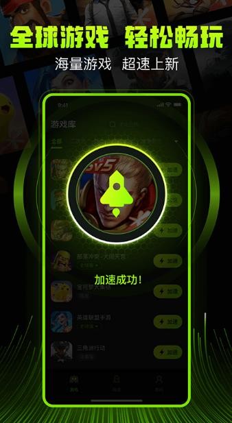 2、LOL手游、吃鸡国际服、王者荣耀等上千款游戏均支持一键开启智能加速!