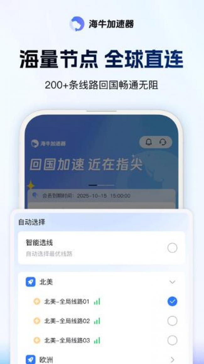 2、大带宽不限流量,一键连接高速回国,告别网络束缚,畅享极速体验。