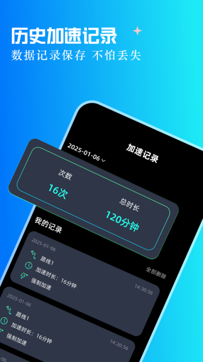 2、所有记录的加速记录均可一键删除,帮助你释放更多手机空间,使用更加流畅。