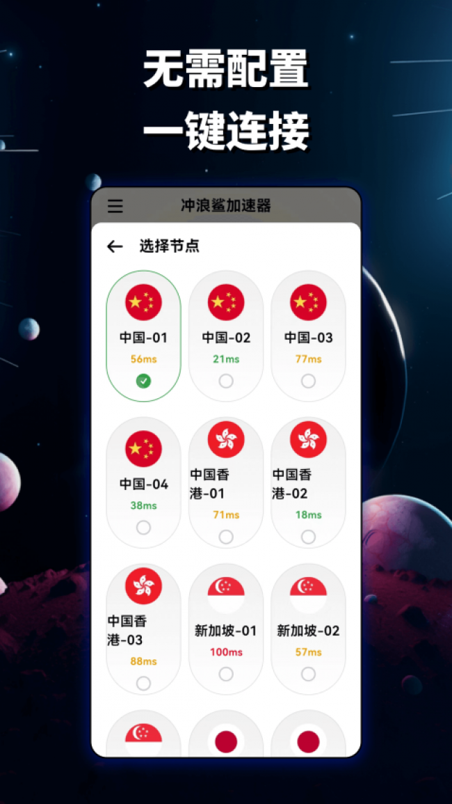 2、根据自己的上网需求,可自定义选择网络节点,并能立即实现提速,没有限制。