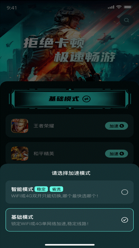 2、这里还为用户提供了稳定的网络体验,对当前的游戏网速都可智能识别优化,稳定运行。