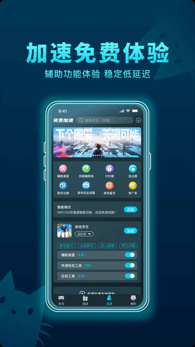 2、减少延迟和丢包问题,提供稳定的游戏连接,让玩家在竞技对战中保持敏捷反应。