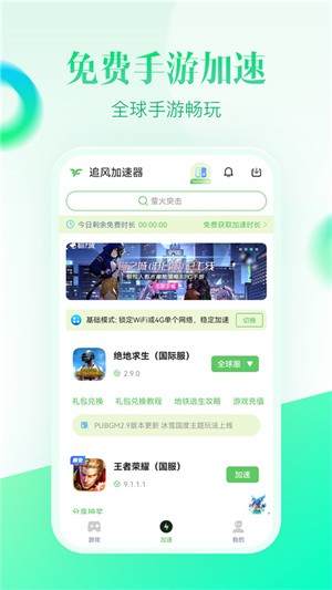 1、追风加速器是一款提供免费游戏加速服务的手机游戏加速器,让用户只需点击一下,就能加速全球数万款热门游戏。