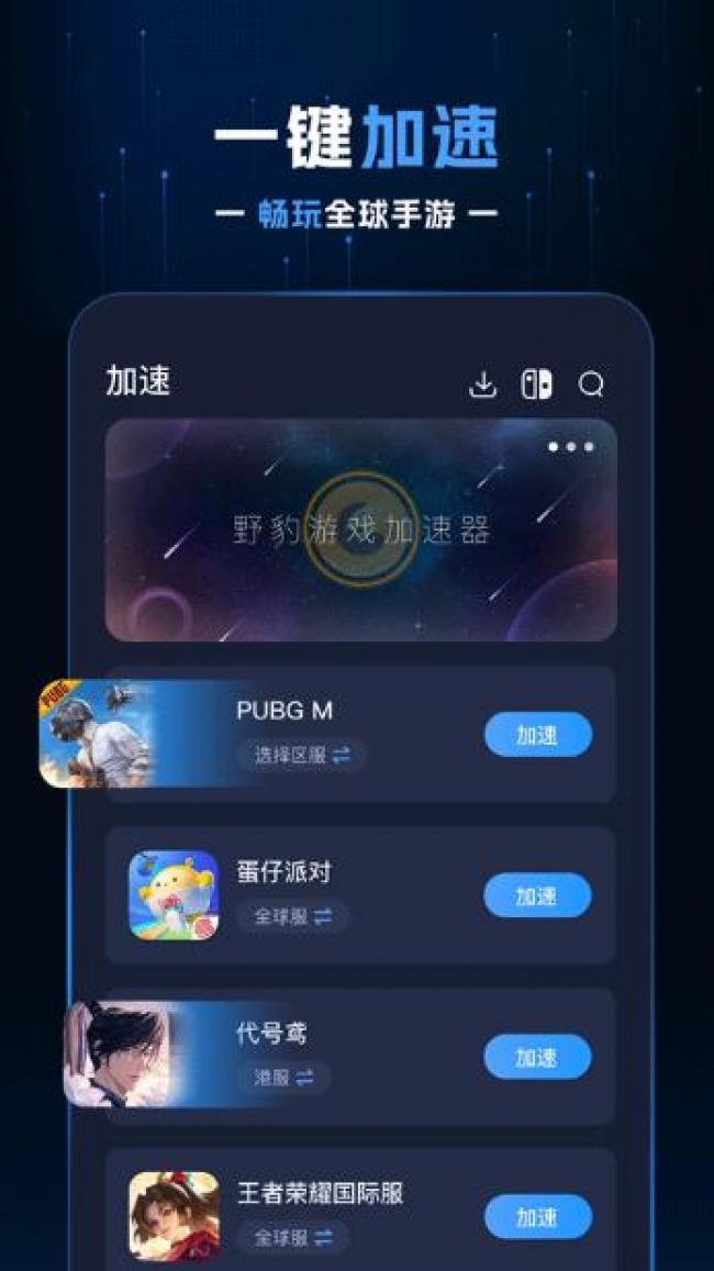 野豹加速器app官方下载是一款功能请打的网络加速工具,它可以让用户体验到流畅稳定的网络环境,不论是国服还是外服都可以一键加速,大大降低网络延迟和丢包率,为用户提供优质的游戏体验,可以支持当前热门的各种游戏,你可以根据自己的需求自由选择,一键就可以开启网络加速,满足不同用户的使用需求,非常适合喜欢玩游戏的用户,界面设计简洁干净,所有功能都一目了然,小白也能快速上手,为用户提供全面的网络加速服务,如果你也喜欢这款软件的话,软件站现有最新版本,那就快来下载吧。