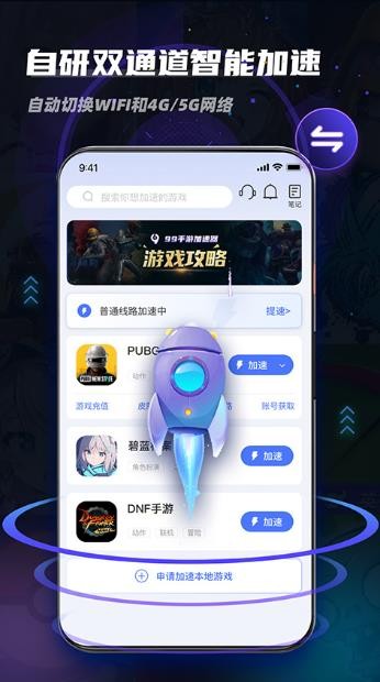 2、WIFI和4G网络智能切换,大幅降低游戏延迟、掉线、丢包等问题,强力保障您游戏的流畅稳定。