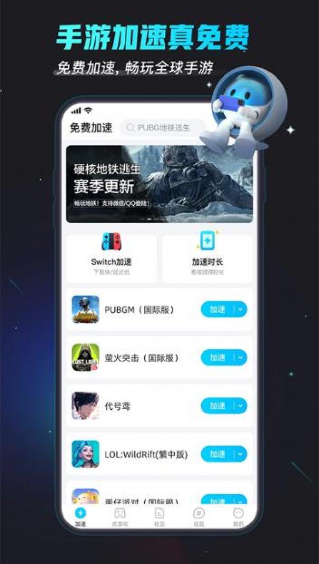 2、支持PUBGM、Roblox、和平精英、王者荣耀、Lost Light、暗区突围、使命召唤等上万款全球好游免费加速。