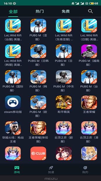 2、覆盖海外多个区服的加速节点,支持体验服、国际服、欧美服、亚服、日韩服、港澳台服。