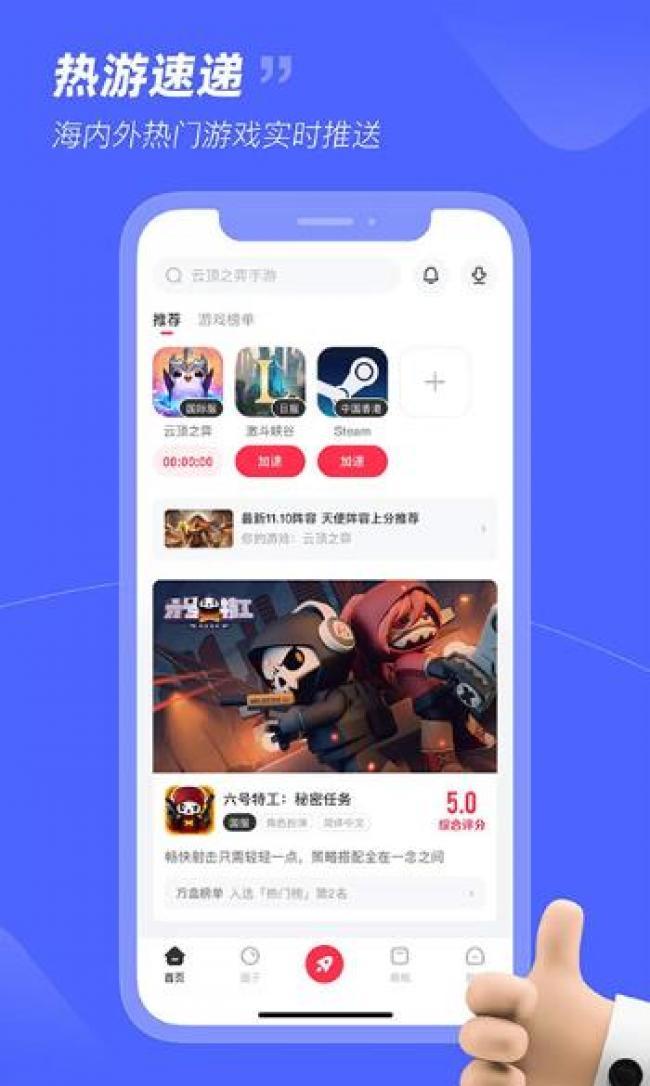 3、可对游戏网络进行测速,更好了解当前网络状况,通过独家的自研技术对实战游戏进行wifi和移动网络加速。