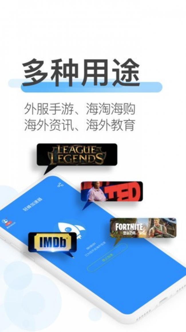 3、适用于外服手游加速,解决游戏掉线、联机困难、延迟高等问题,适用于海淘海购加速。