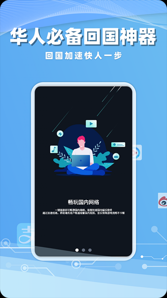 2、告别海外网络延迟卡顿,一键回国,简单易用;一键穿越,无忧回国。