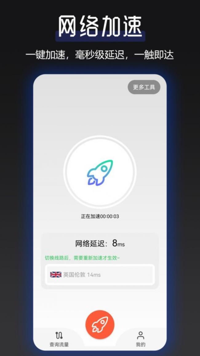 3、的界面简洁明了,操作便捷,用户只需一键即可开启加速,无需复杂设置。