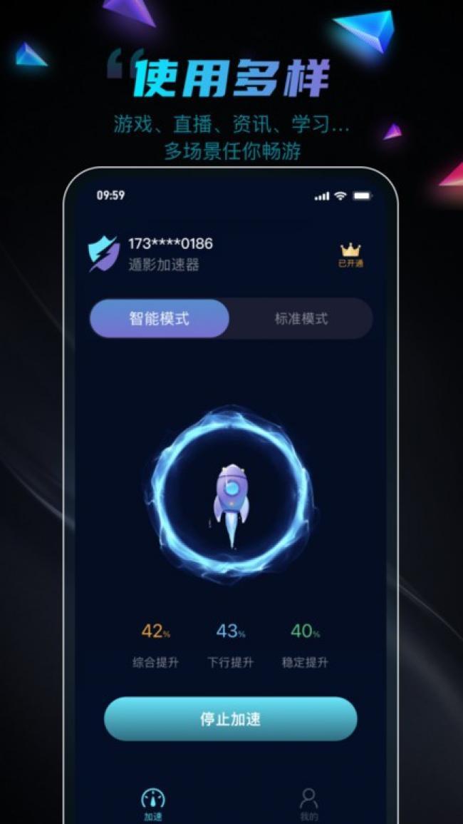 1、遁影加速器加速影视音乐加载速度,降低游戏延迟,亦或者网购快人一步。