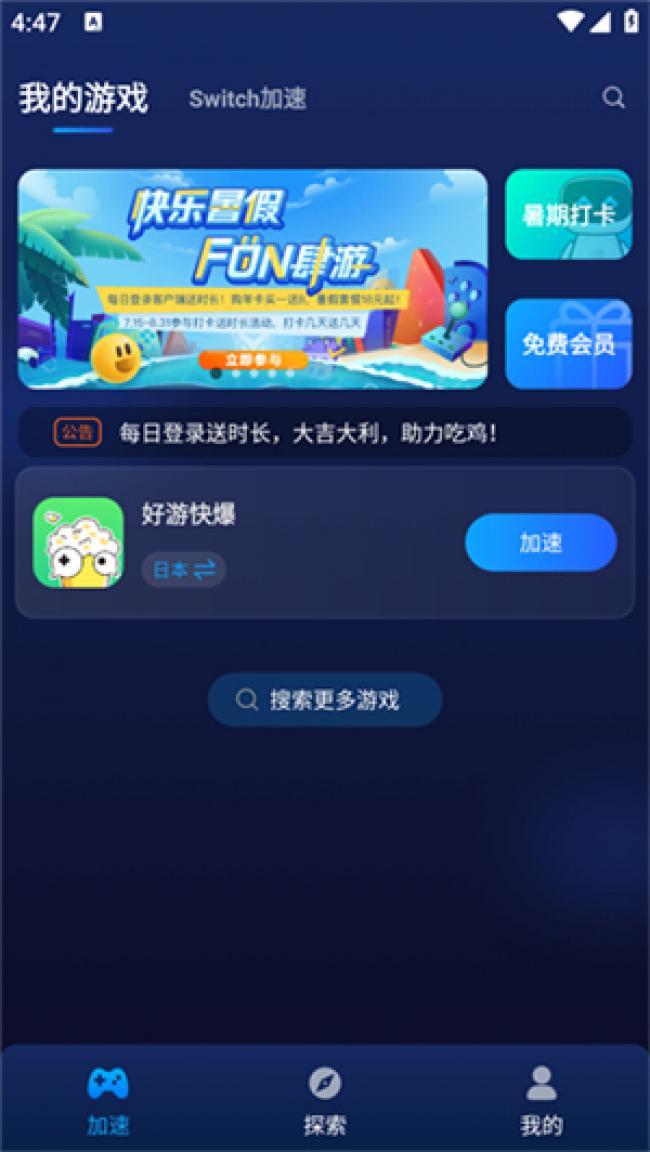 2、核心加速功能完全免费,降低了使用门槛,让更多玩家享受高质量的加速服务。