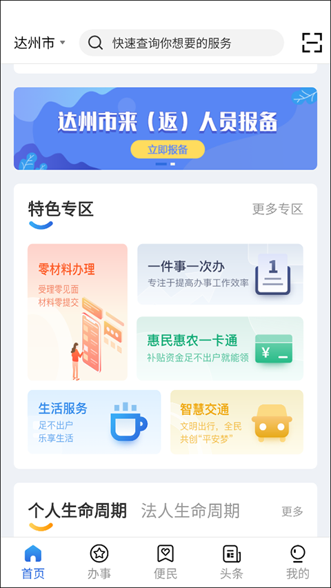 3、提供万达开专区、惠民惠农一卡通、智慧医疗、智慧交通、生活服务等本土化便民功能,满足市民日常多样化需求。