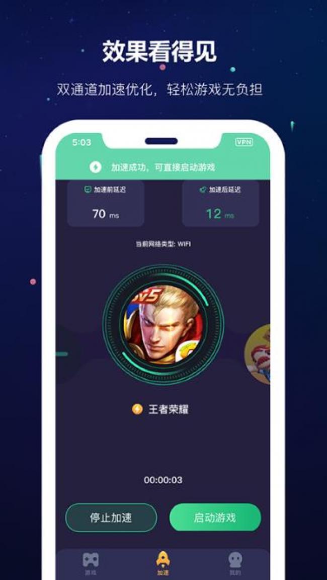 2、有效减少延迟,根据不同的网络条件优化加速方案,减少高强度的游戏延迟。