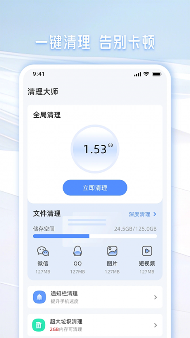 1、借助一键清理功能,迅速清除手机内的垃圾文件、应用缓存、多余数据等,腾出可用空间,加快设备响应速度。