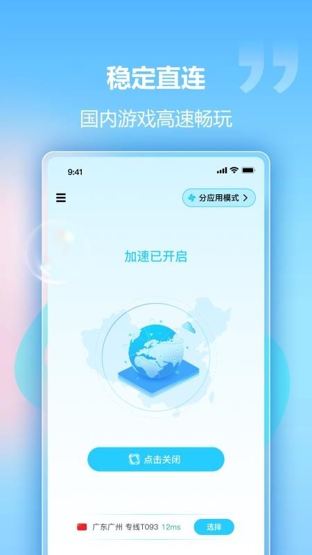 2、回国加速器使用游戏应用多模式切换,达到速度和延迟最优体验。